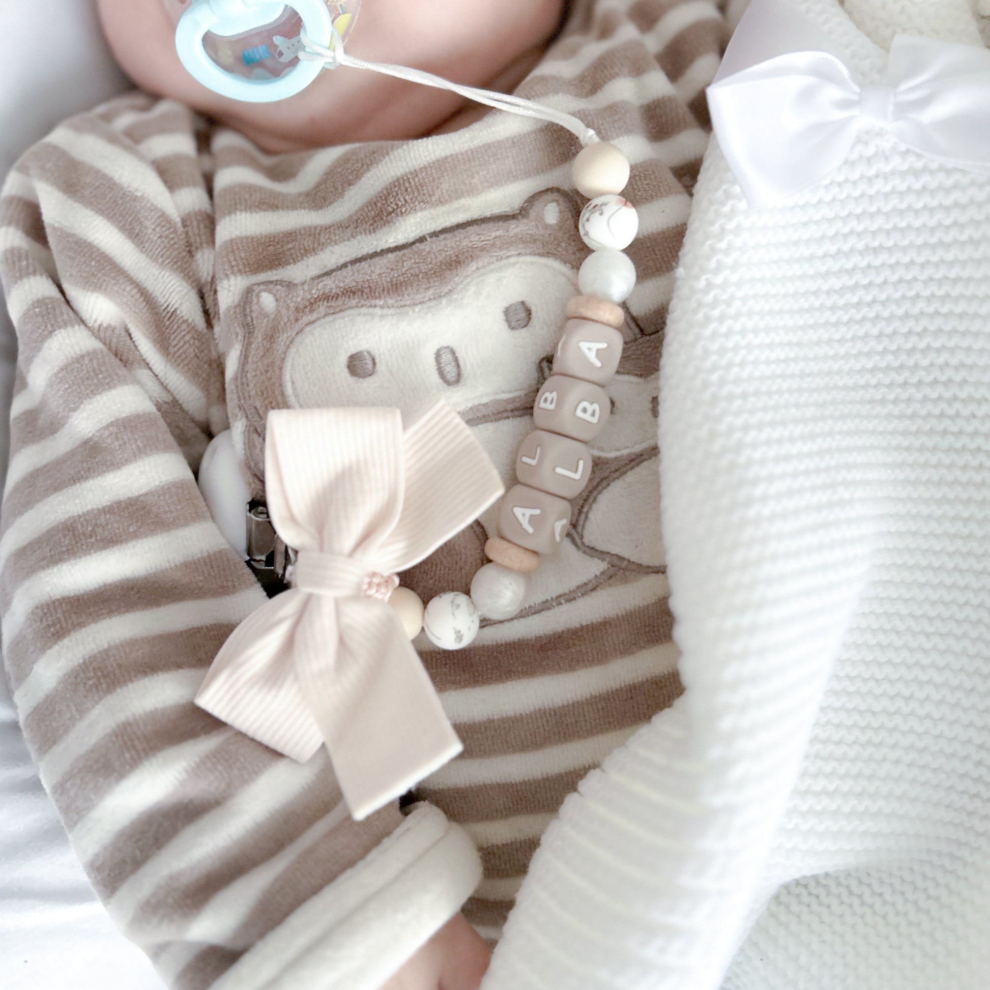 Gardez la tétine de bébé propre et à portée de main avec notre attache tétine personnalisable, fabriqué à partir de silicone sans BPA, dans le respect des réglementations européennes.