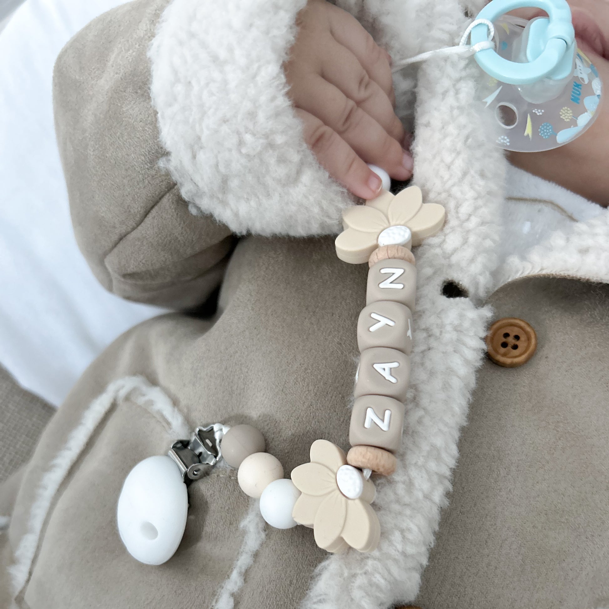 Gardez la tétine de bébé propre et à portée de main avec notre attache tétine personnalisable, fabriqué à partir de silicone sans BPA, dans le respect des réglementations européennes.