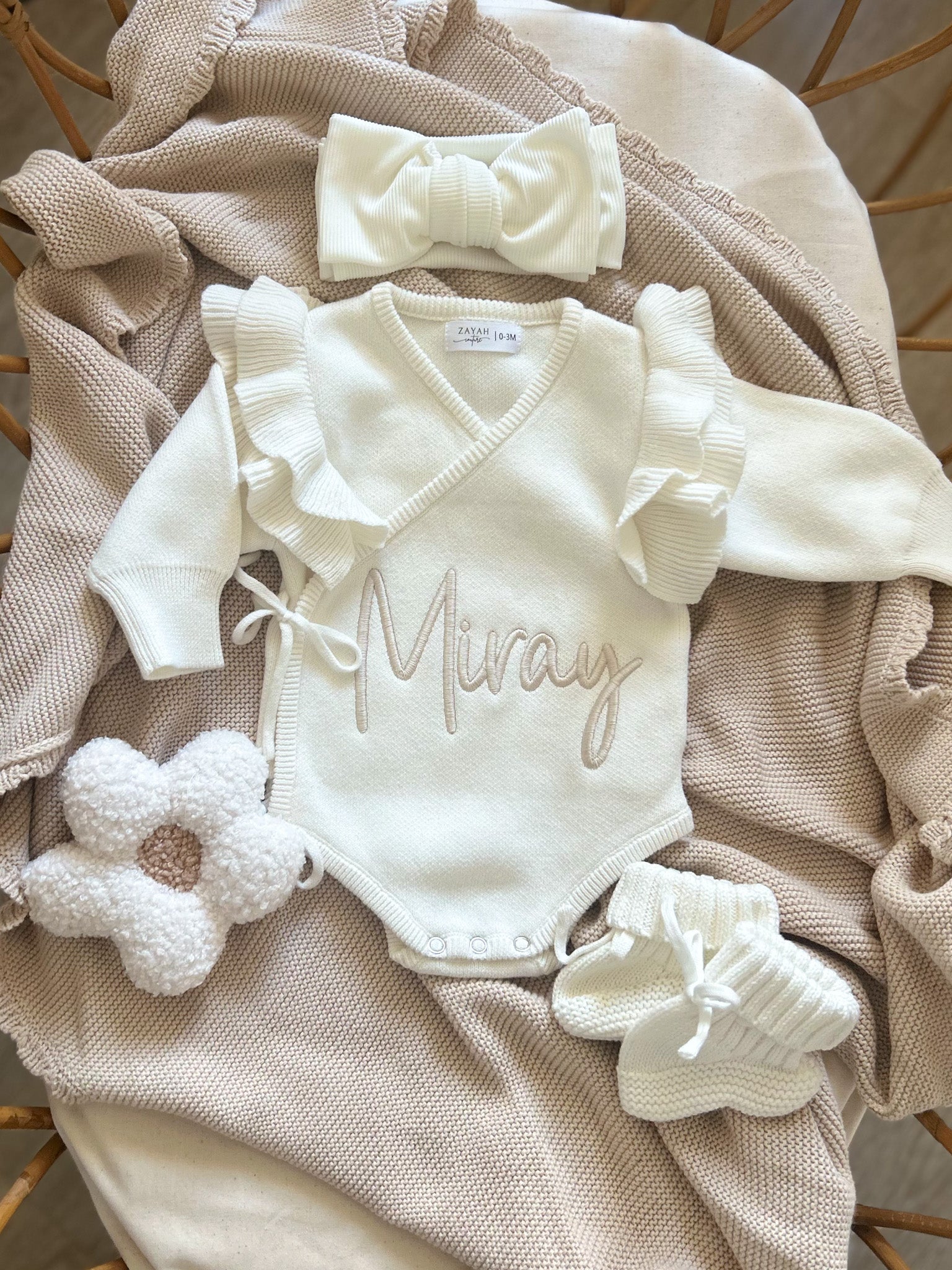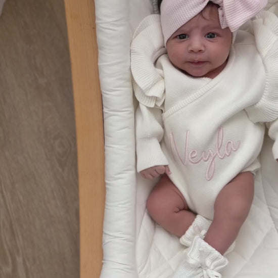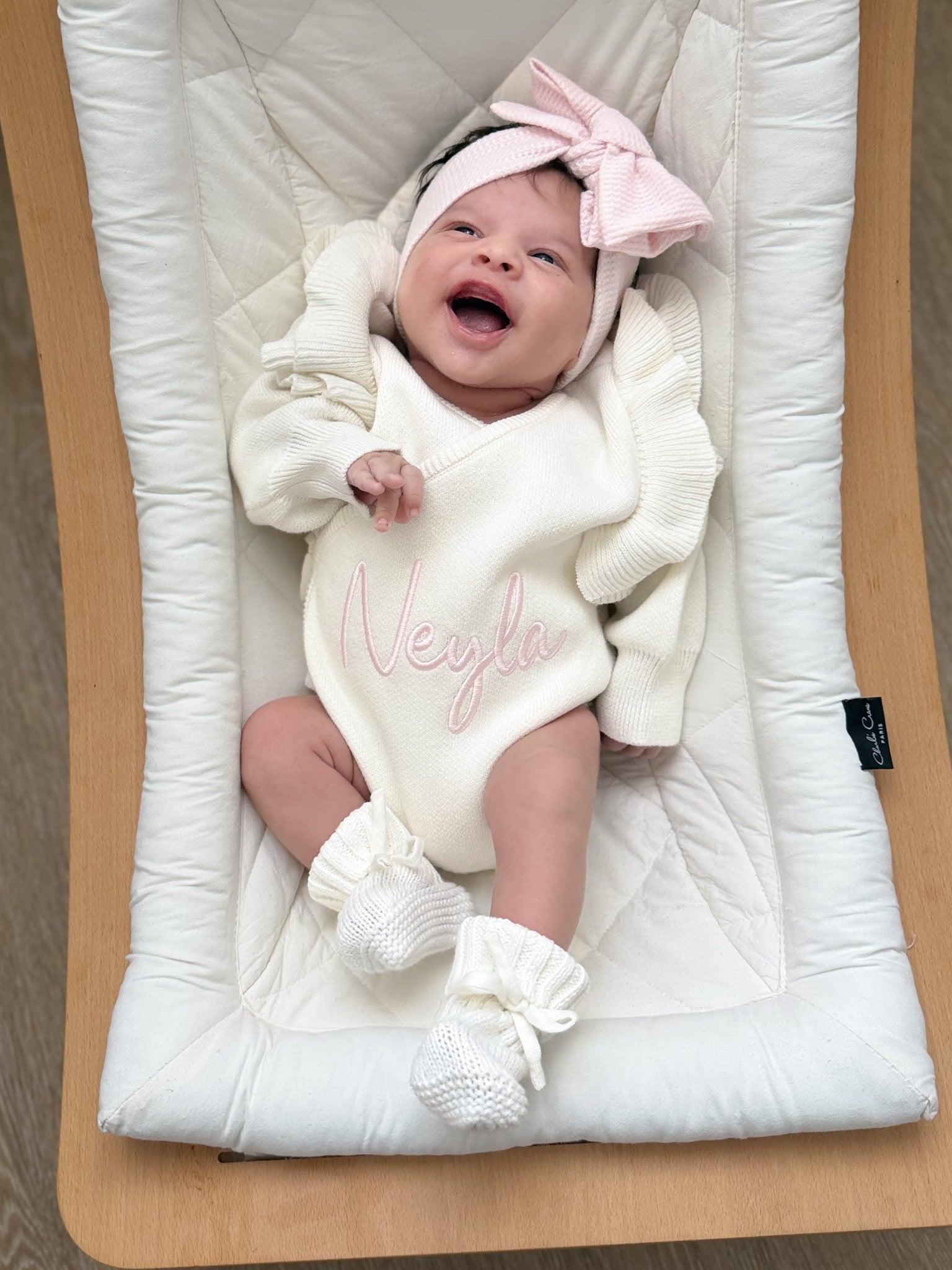 Offrez à votre bébé le confort et la douceur avec notre barboteuse en maille brodée, personnalisée au prénom de votre petit trésor.