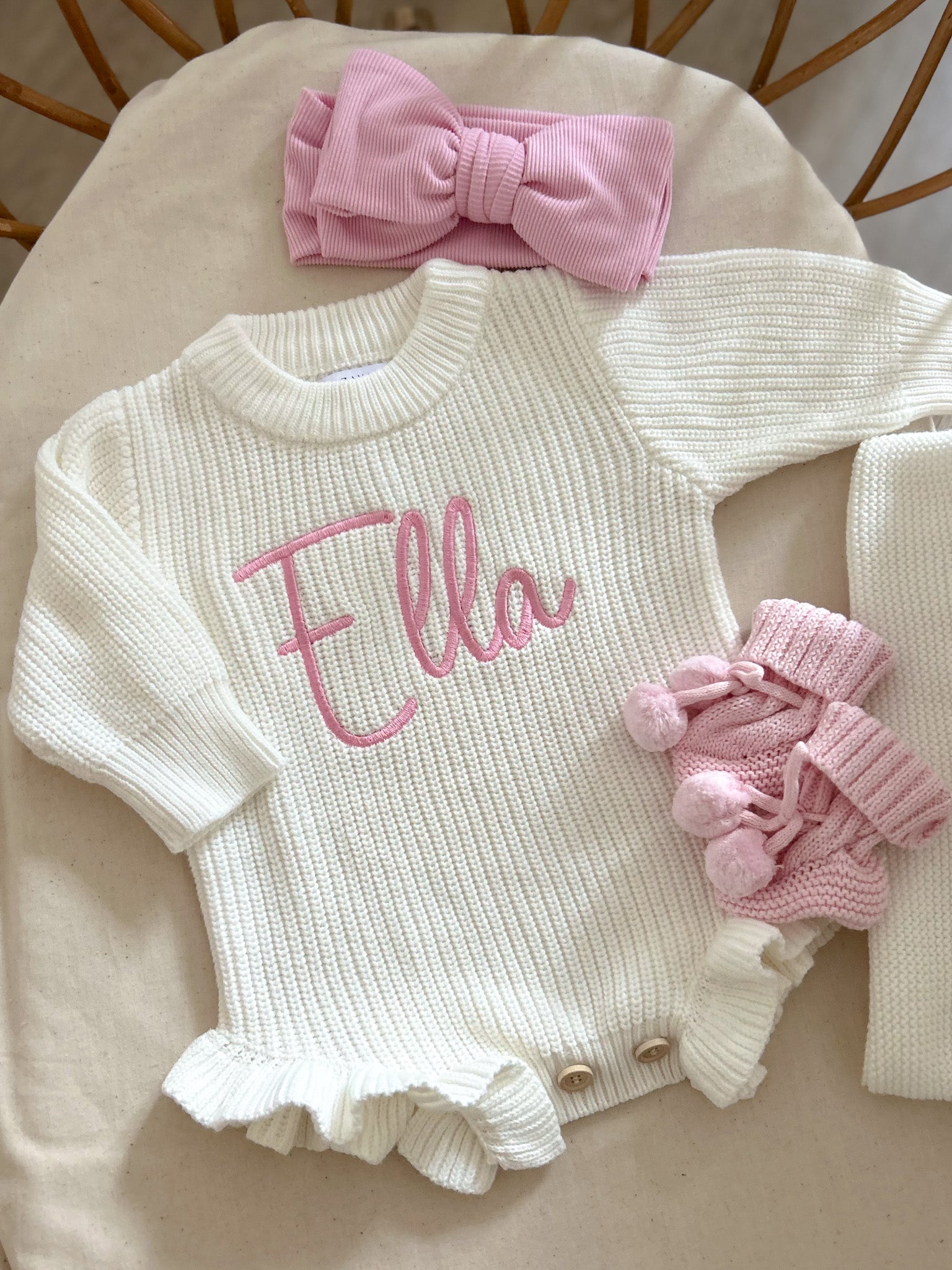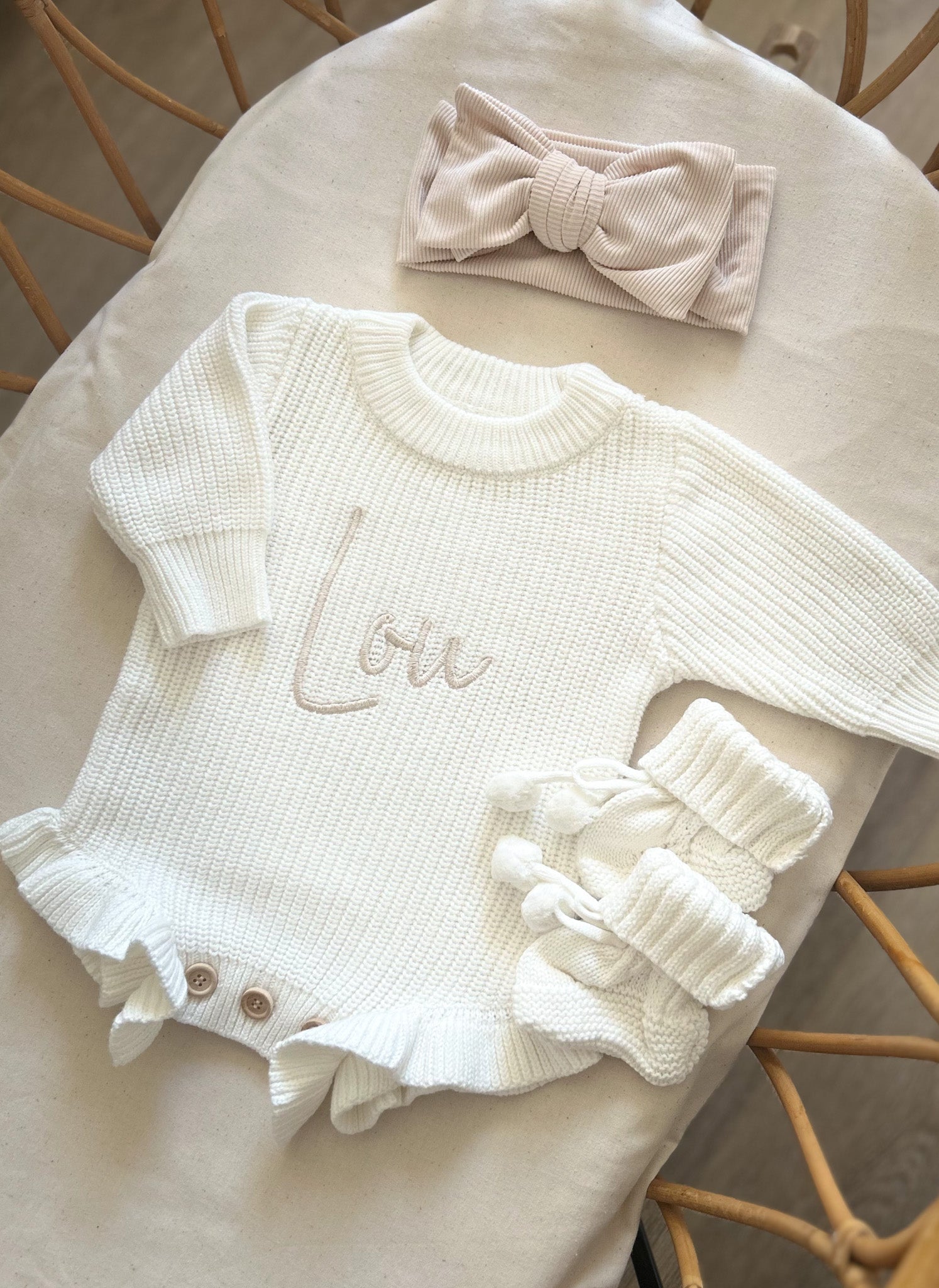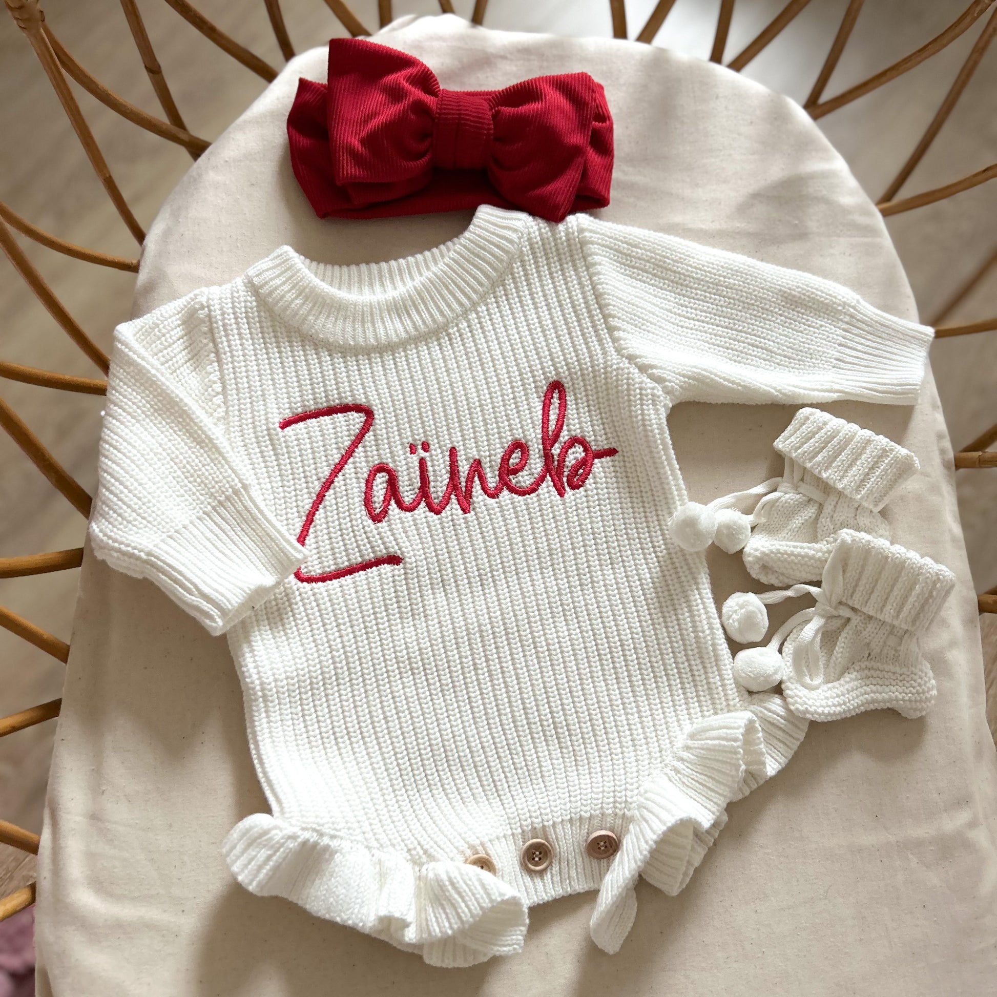 Offrez à votre bébé le confort et la douceur avec notre barboteuse en maille brodée, personnalisée au prénom de votre petit trésor.