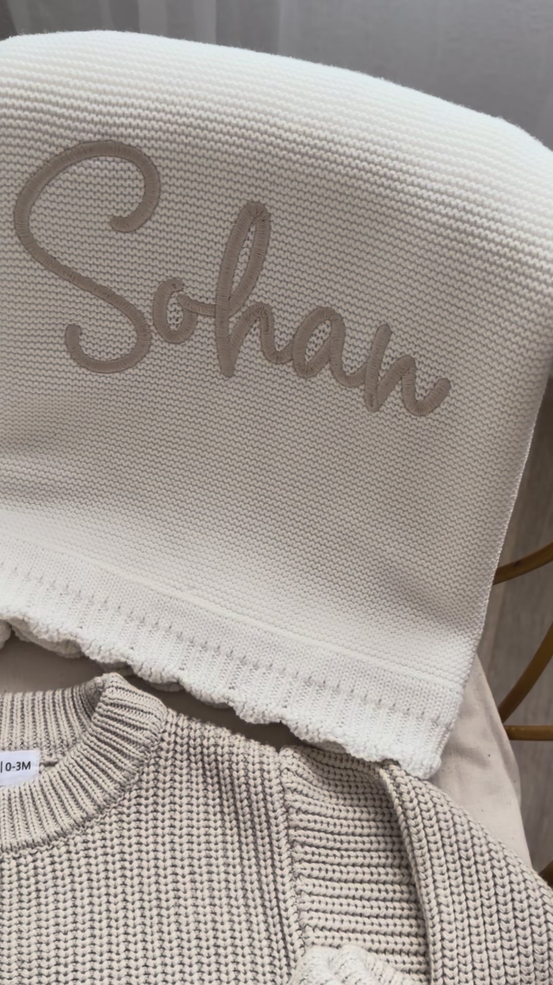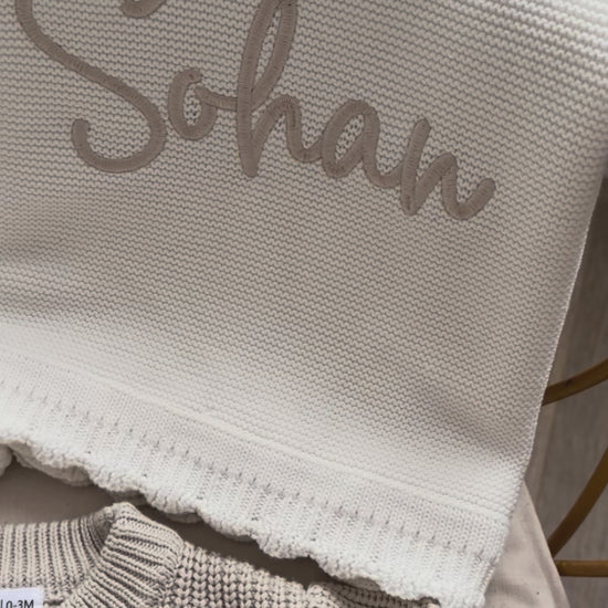 - Un plaid en maille a bord festonné