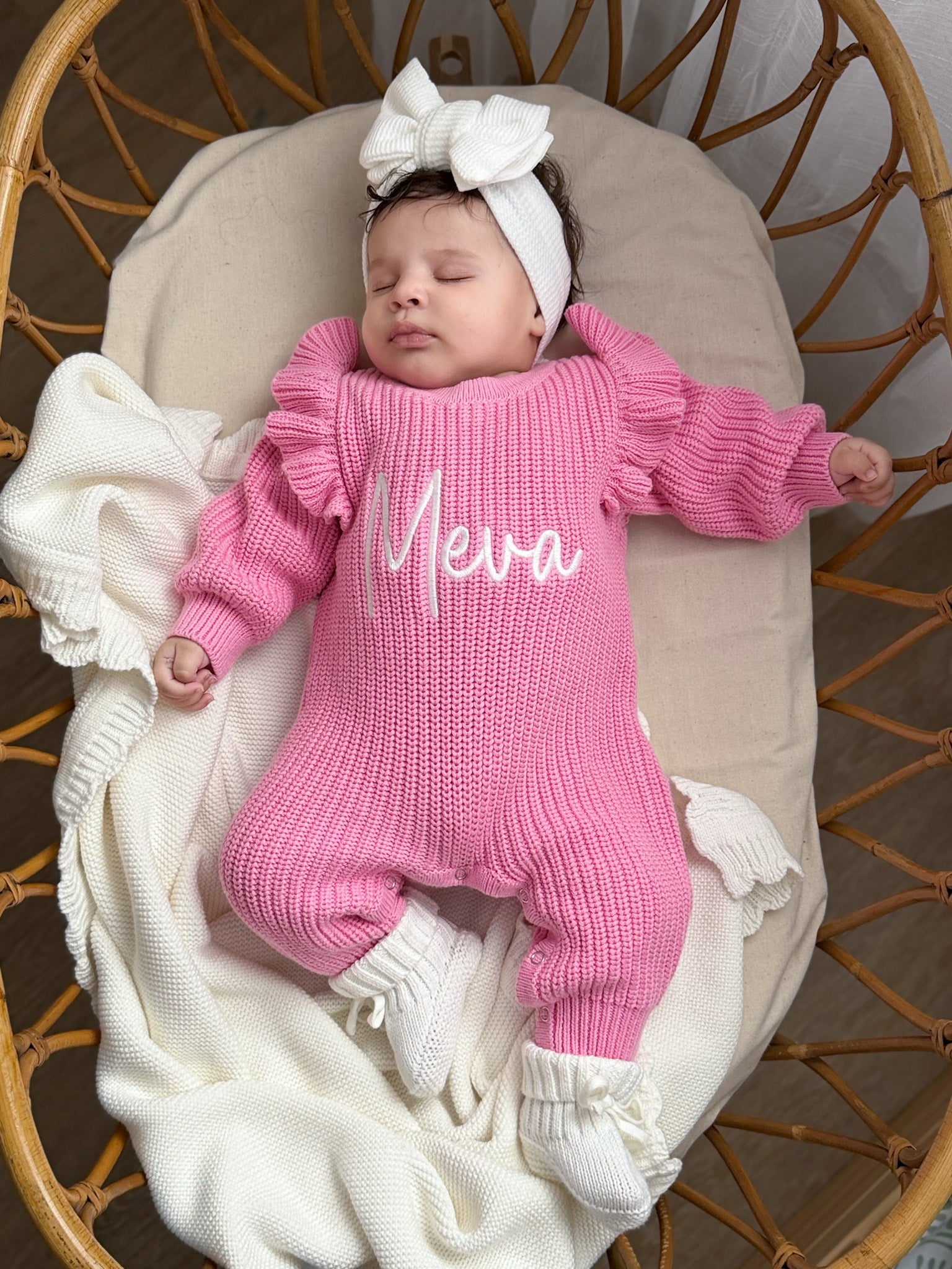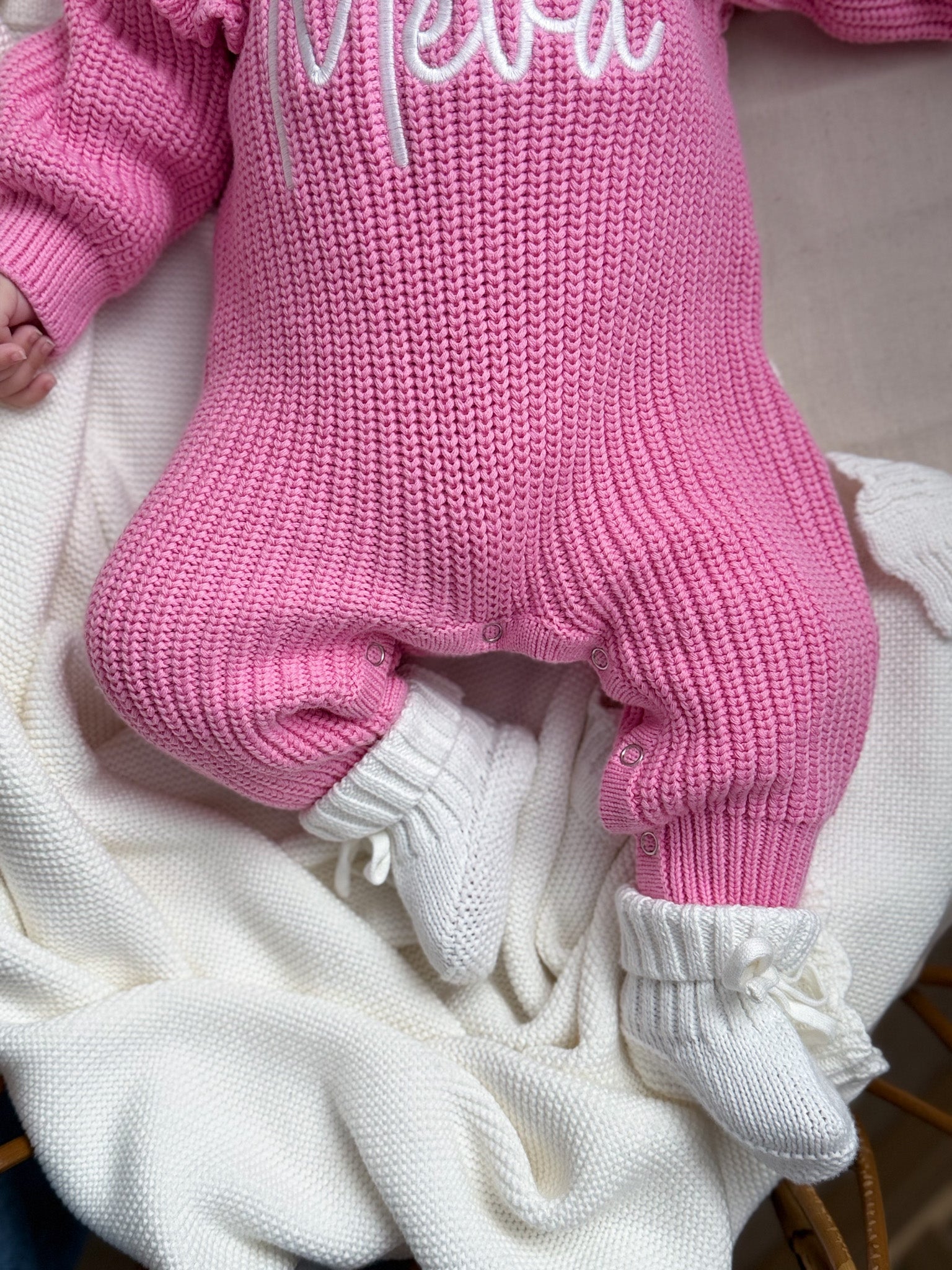 Offrez à votre bébé un confort absolu et un style intemporel avec notre combinaison en maille délicatement brodée.