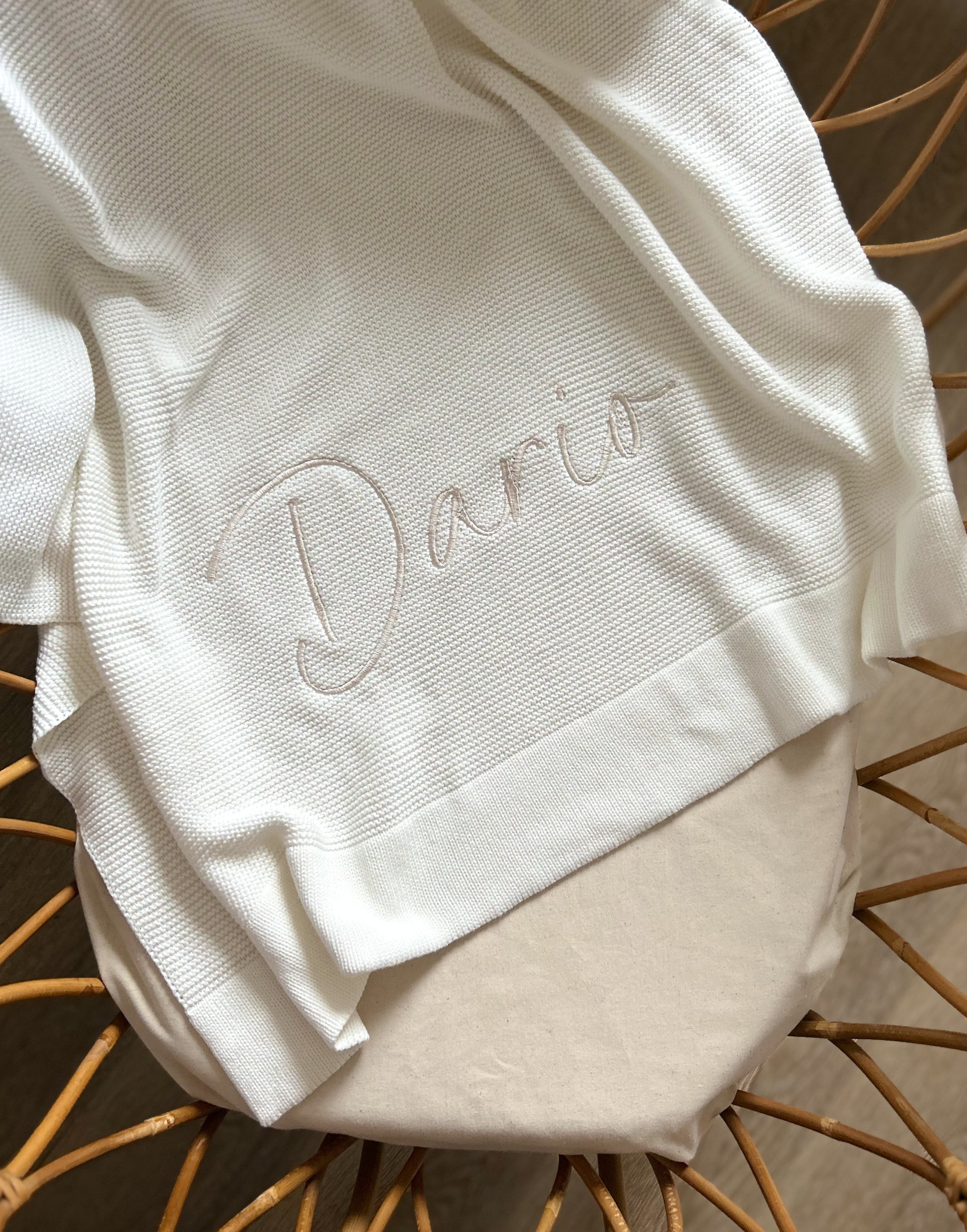 Offrez chaleur et douceur à votre bébé avec notre plaid en maille 100% coton, personnalisable avec son prénom pour une touche unique.