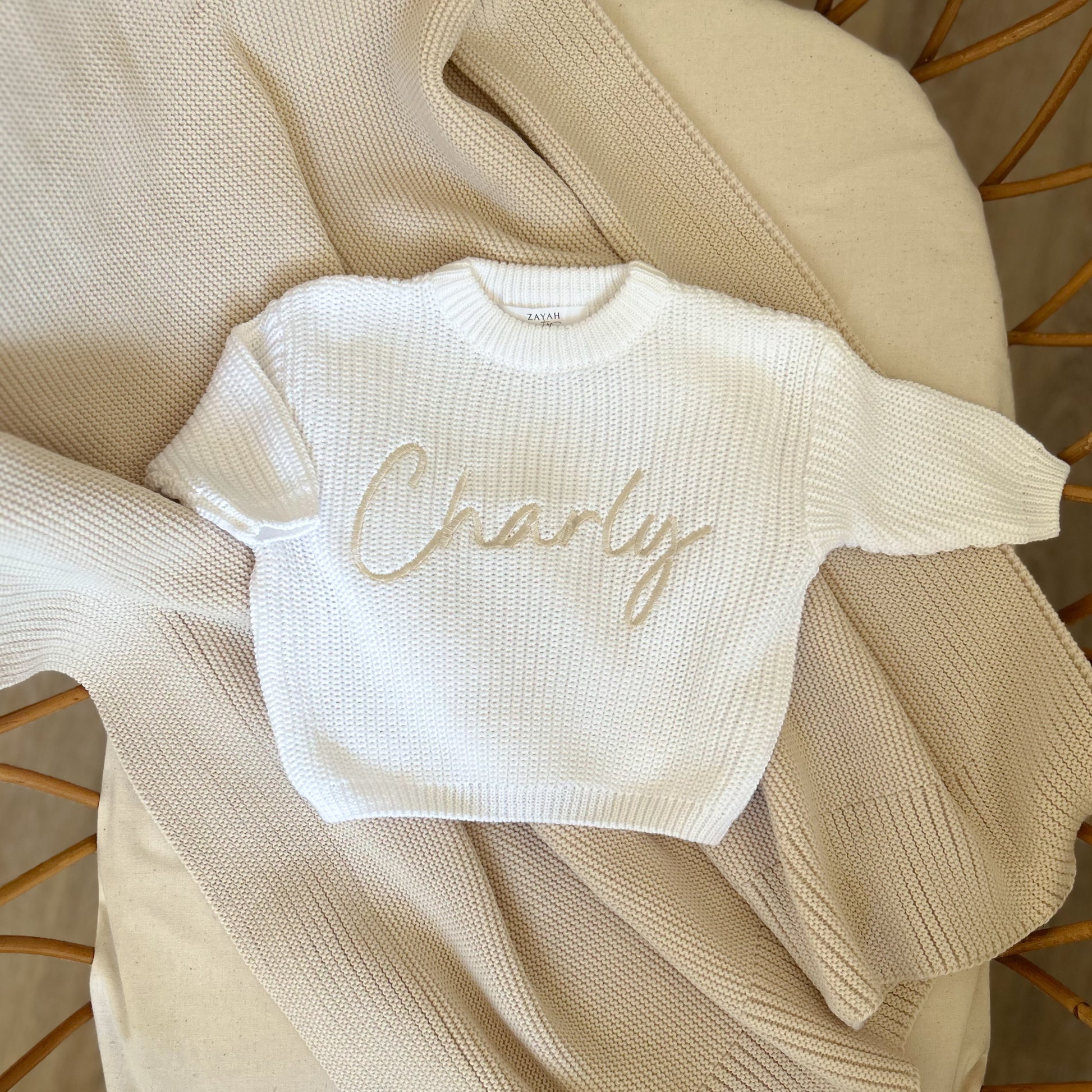 Craquez pour notre pull en maille douce et respirante, confectionné en coton de haute qualité et brodé au prénom de bébé pour une touche unique.